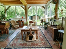 La modernité se glisse avec discrétion : assainissement neuf, double vitrage, gouttières havraises, carport pour deux voitures, et un chalet en bois transformé en atelier d'inspiration.